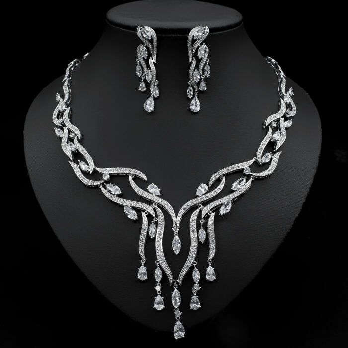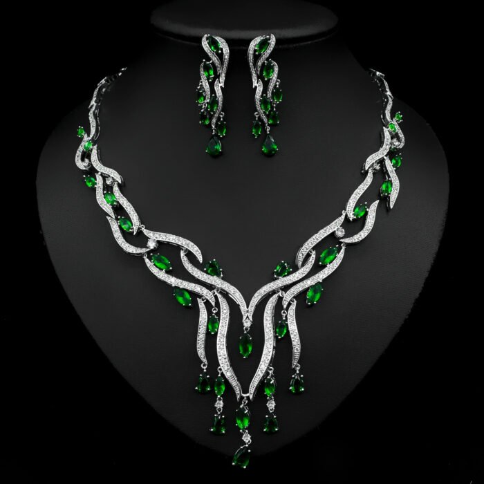 Luxury Crystal Zircon Jewelry Set – Elegant Tassel Pendant Necklace & Earrings (Blue, Green, Red, Yellow)